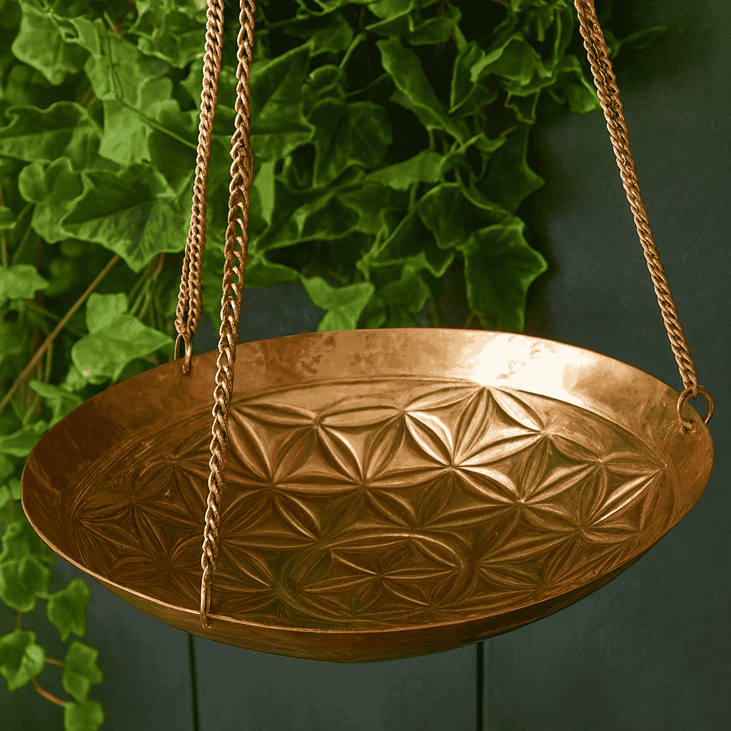 • Intricate Floral Pattern: The beautiful hammered copper bowl has a subtle, intricate floral pattern embossed on its surface, adding a touch of rustic elegance and a warm, metallic finish that catches the light and attracts birds.