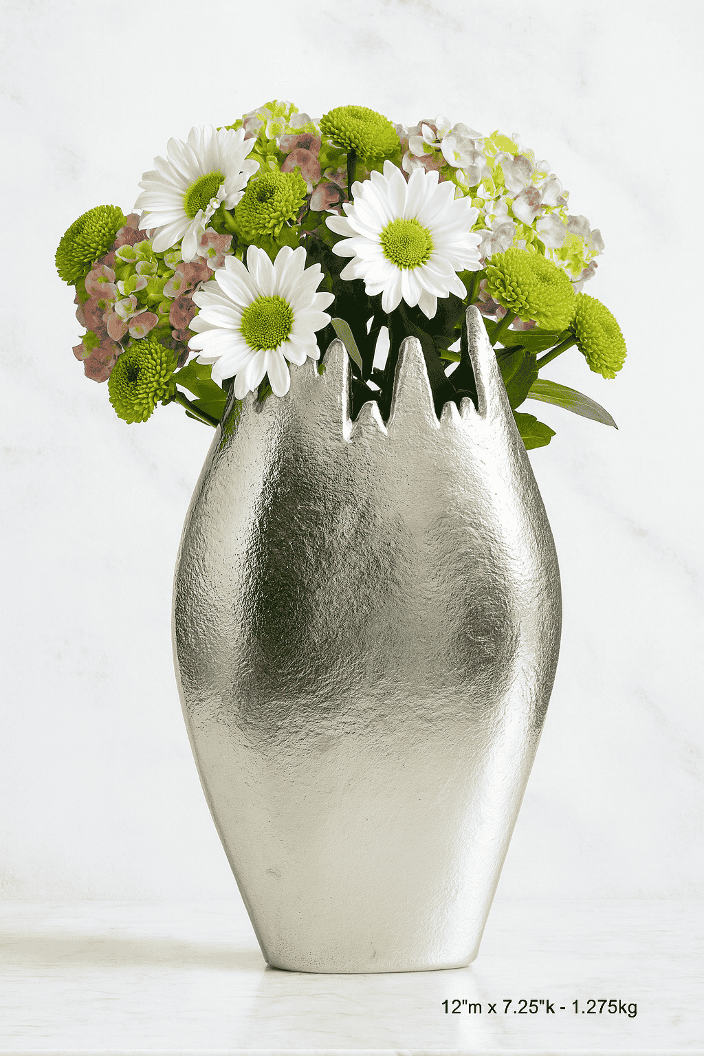 • Shimmering Metallic Finish: The soft, matte silver finish creates a sophisticated and reflective surface that beautifully highlights the colors of your floral arrangements.