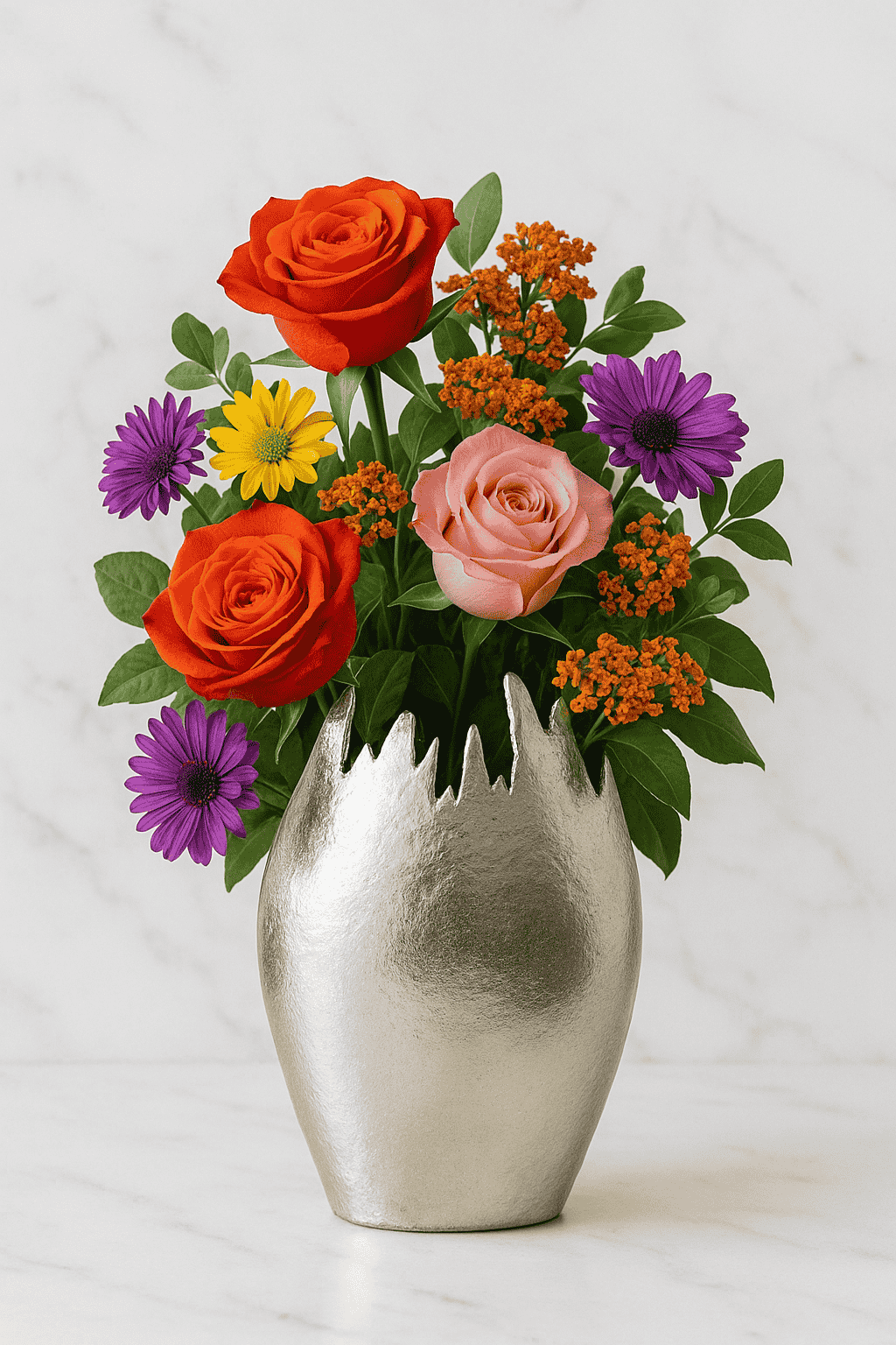 Sleek Metallic Finish: The matte silver finish provides a sophisticated and clean backdrop, allowing the vibrant colors of your flowers to truly pop.
