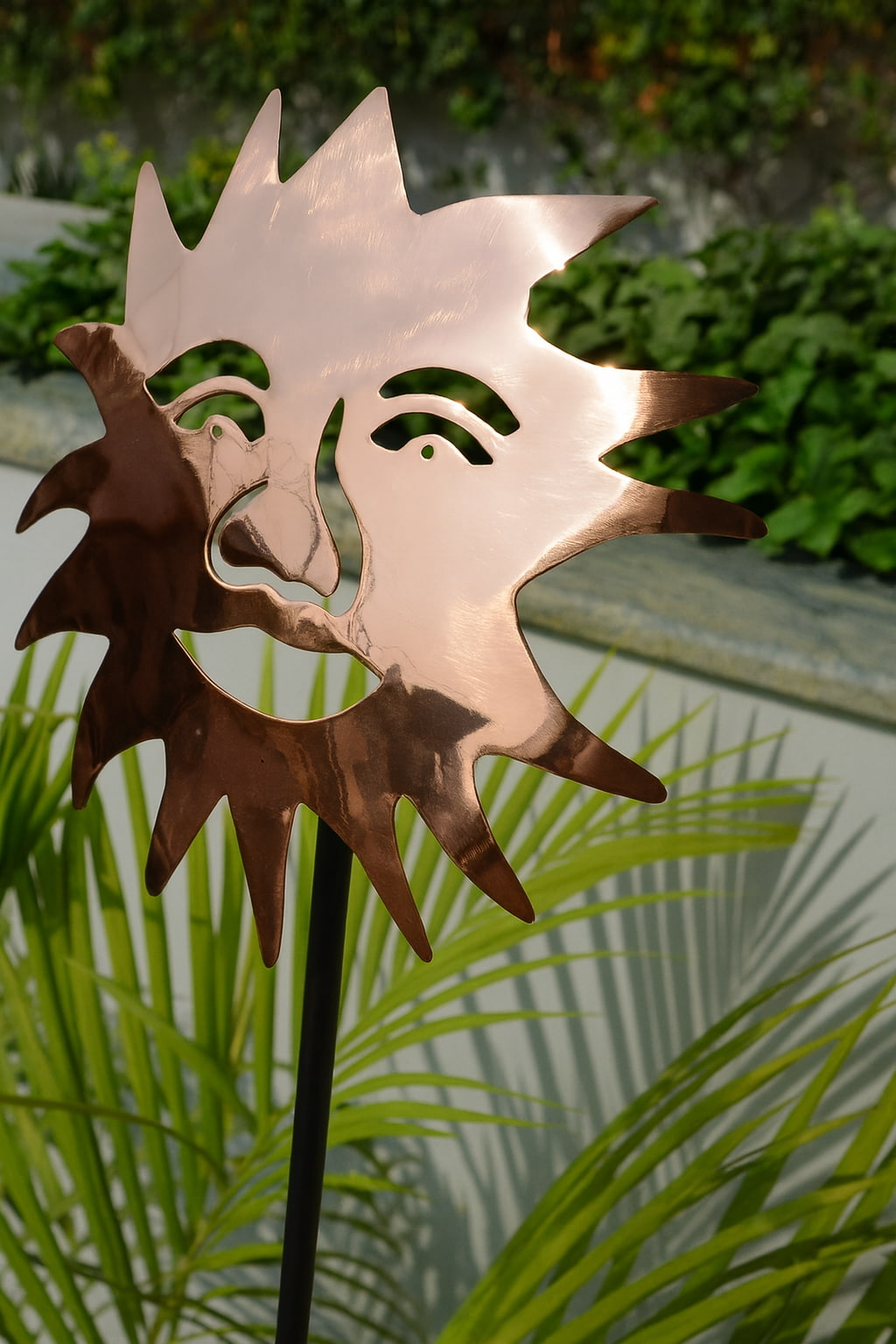 Cheerful Garden Sun: A whimsical sun sculpture with a smiling face that adds a touch of personality and warmth to your outdoor space.