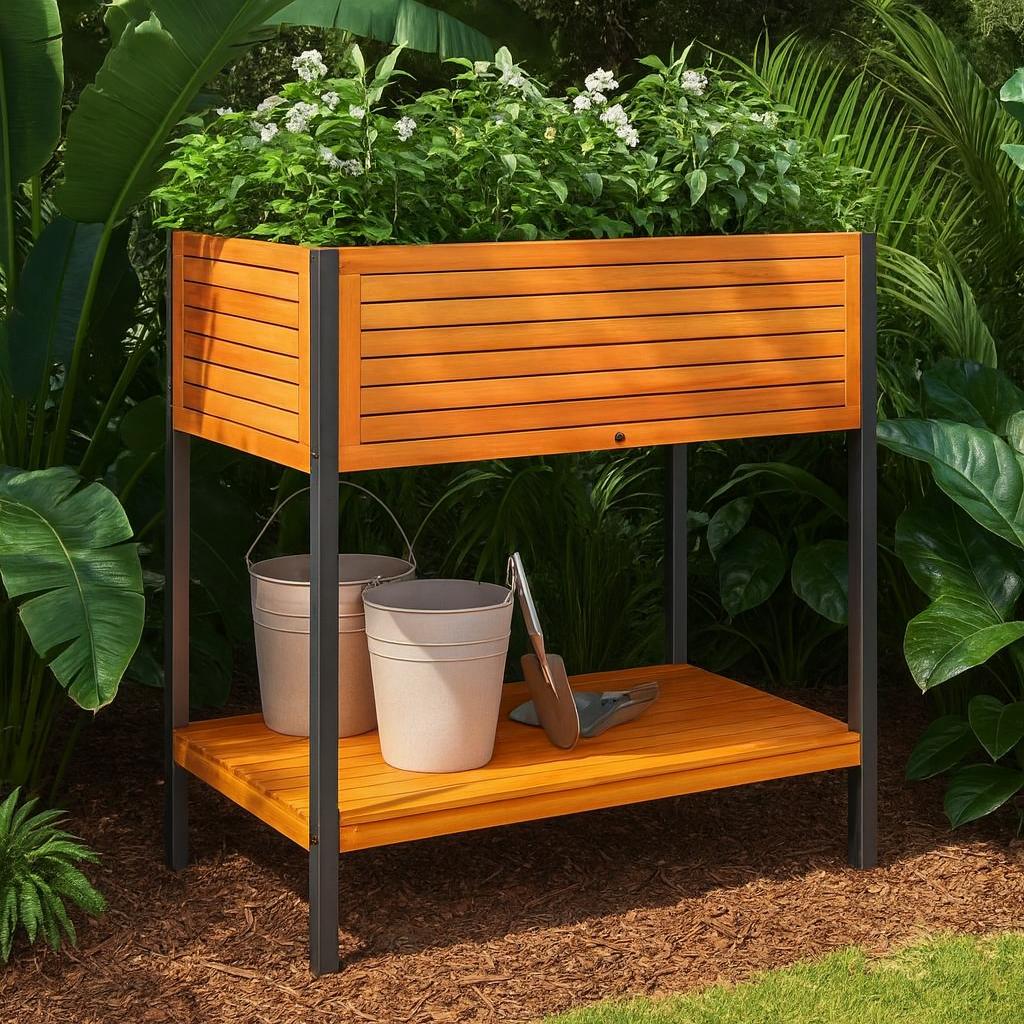 Built to Last: Crafted with a sturdy metal frame and durable wood, this planter is designed to withstand the elements and look great for seasons to come.