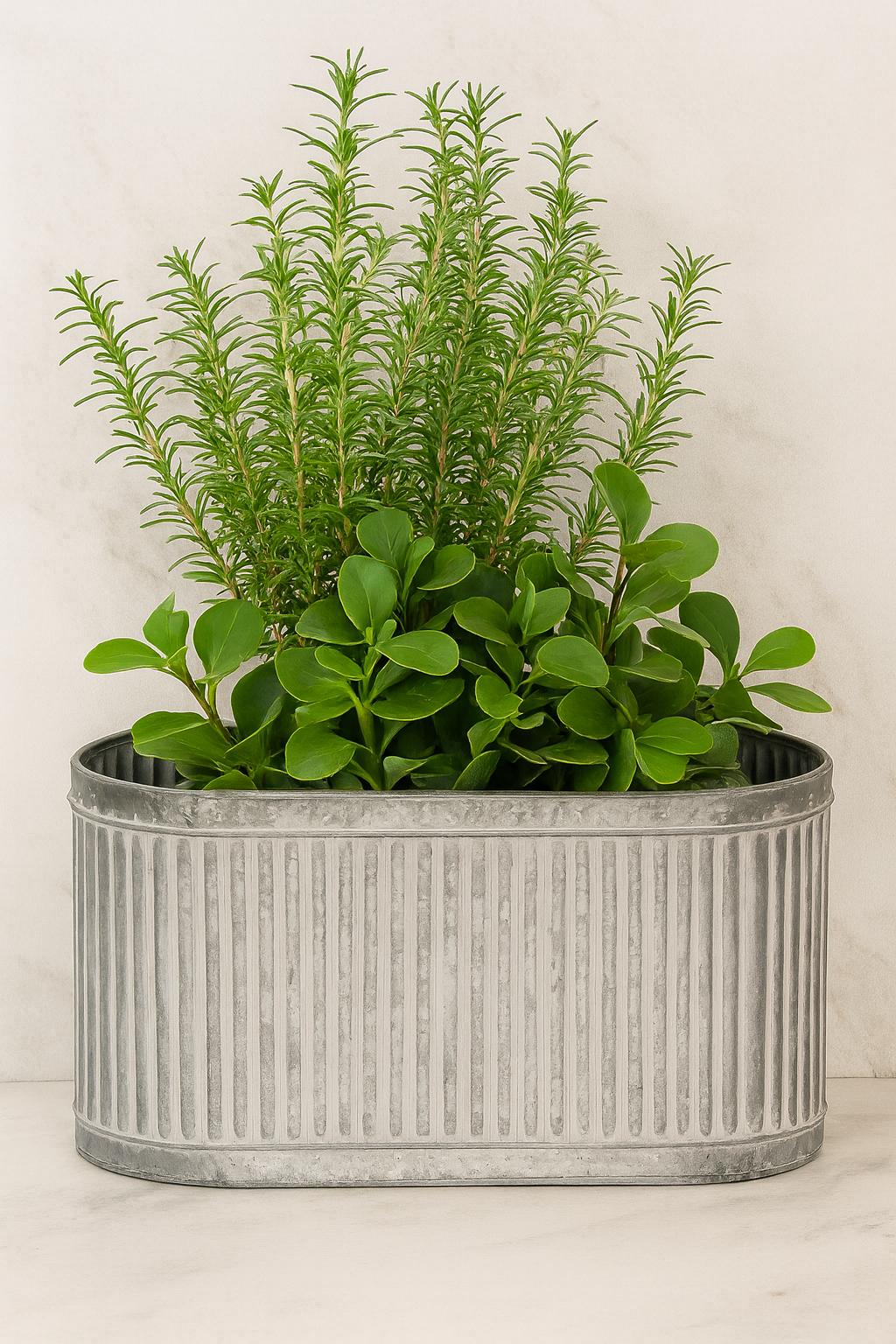 • Rustic Farmhouse Style: This planter features a classic galvanized finish and a corrugated texture, adding a charming, rustic touch to your kitchen, windowsill, or patio.